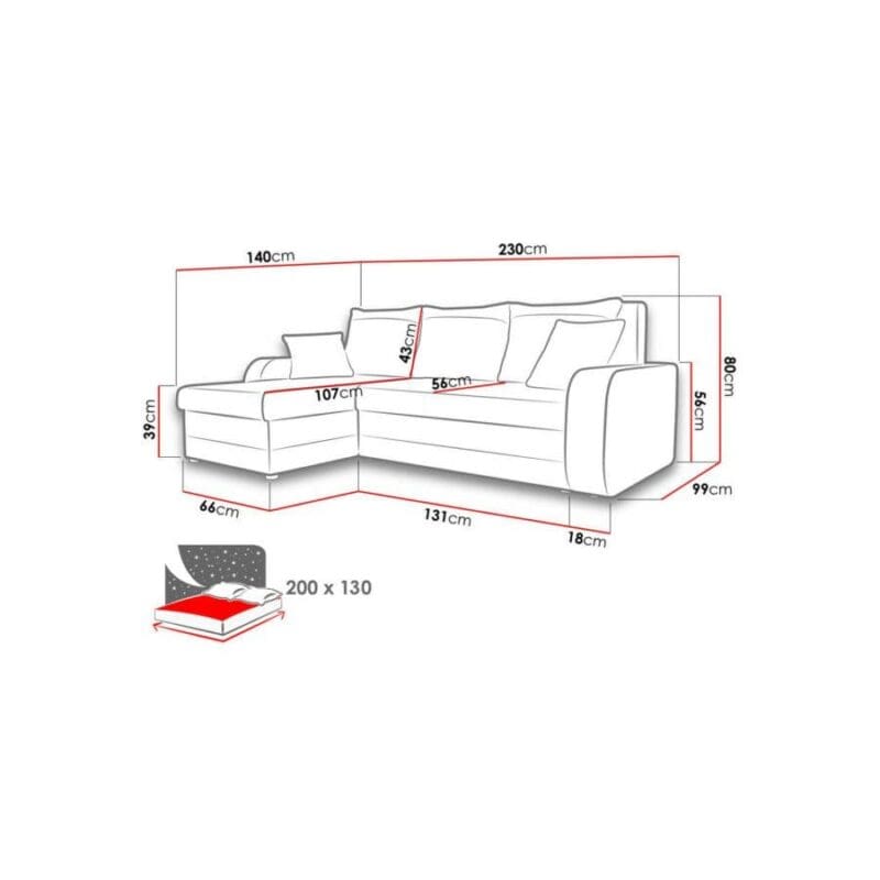 A 195×130 cm-es fekvőfelület ideális a kényelmes alváshoz és pihenéshez. Az ágyazható és ágyneműtartós funkcióval gyorsan és egyszerűen ágyazható. A vendégeid is imádni fogják, és te is élvezni fogod a kényelmet, amit nyújt. A Frea Sarokülővel minden alvás egy luxusélmény.